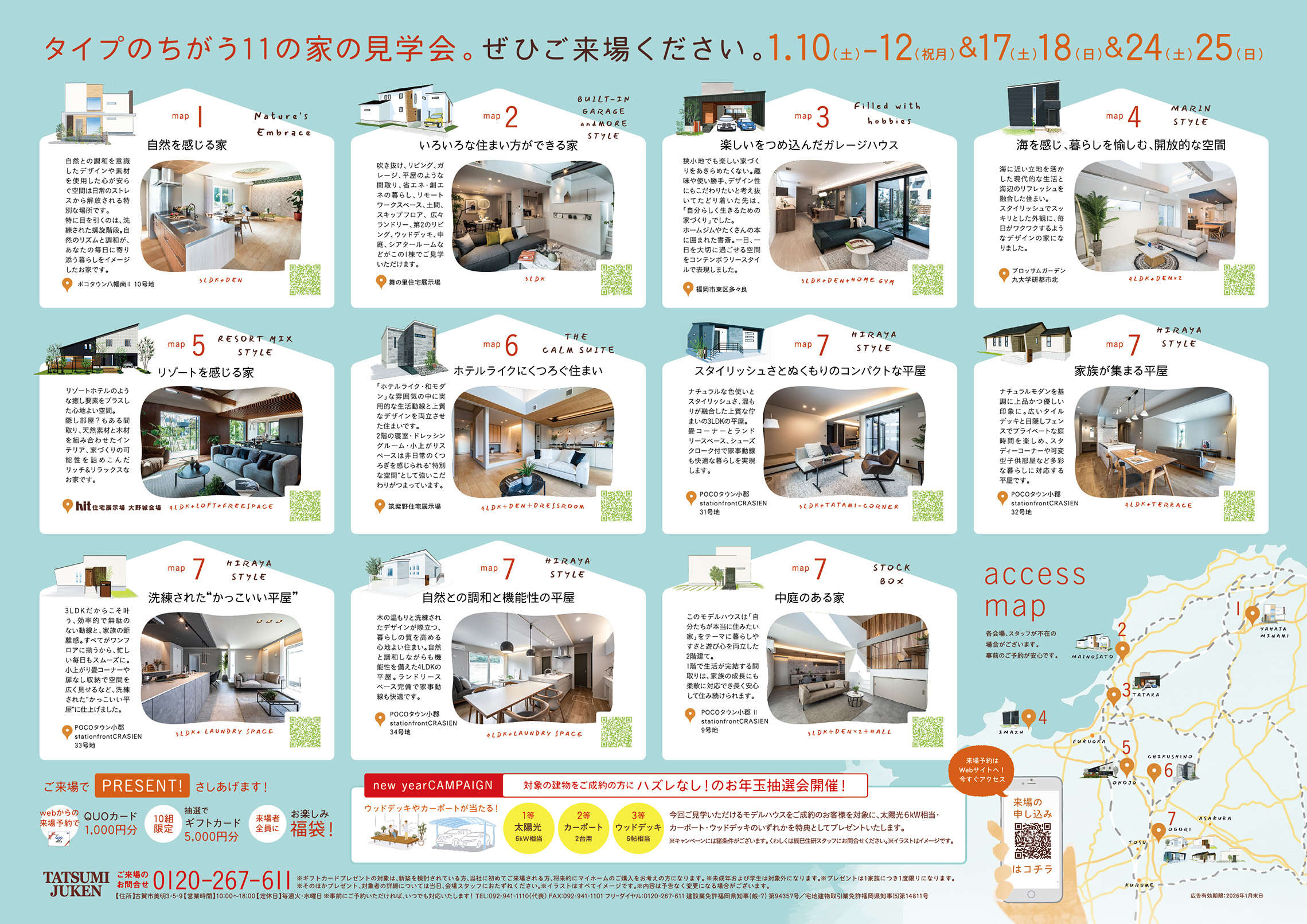 タイプの異なる全11棟の住まいを、福岡県内7つの会場で自由にご見学いただけます。